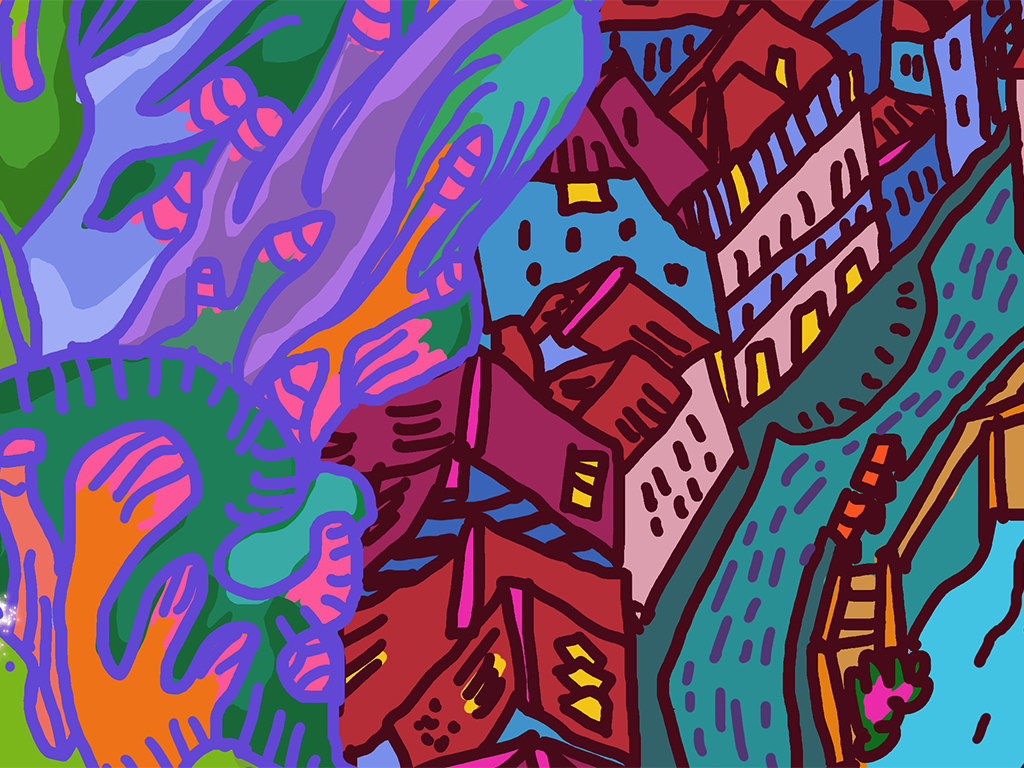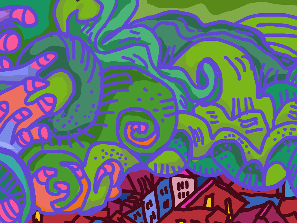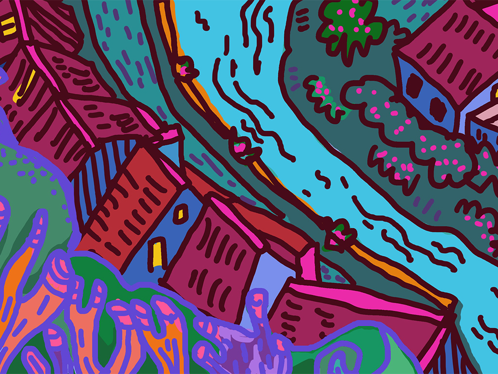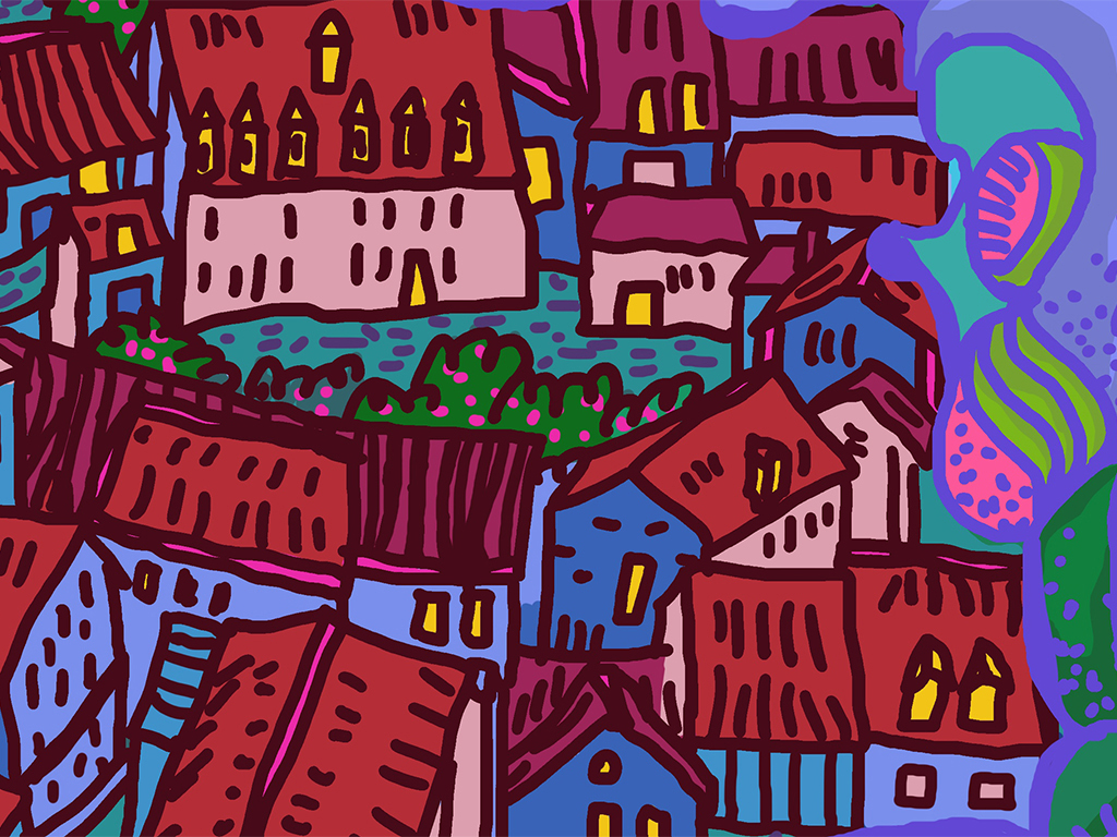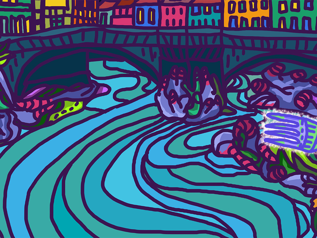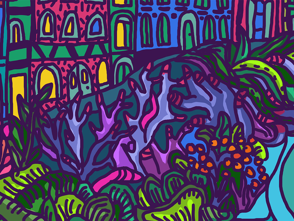 Ce projet vise à esquisser un paysage urbain futuriste, mélangeant des éléments sous-marins et aériens, inspiré par la ville d'Aubusson. En fusionnant l'architecture actuelle de la ville, le mode de vie de ses habitants, la faune et la flore urbaines, avec une vision fictive d'une cité sous-marine du futur, nous plongeons dans un univers de plantes et créatures marines fascinantes, explorant les interactions entre la vie sous-marine et terrestre. L'objectif est de créer un panorama unique, à l'atmosphère mystique et dramatique, qui brouille les frontières entre terre et mer, et qui dépeint un monde futuriste à la fois aquatique et aérien.Ces scénarios, dépeints dans un langage visuel riche, perpétuent la tradition de la tapisserie d'Aubusson tout en évoquant un passé, un présent et un futur à la fois étrange et captivant.