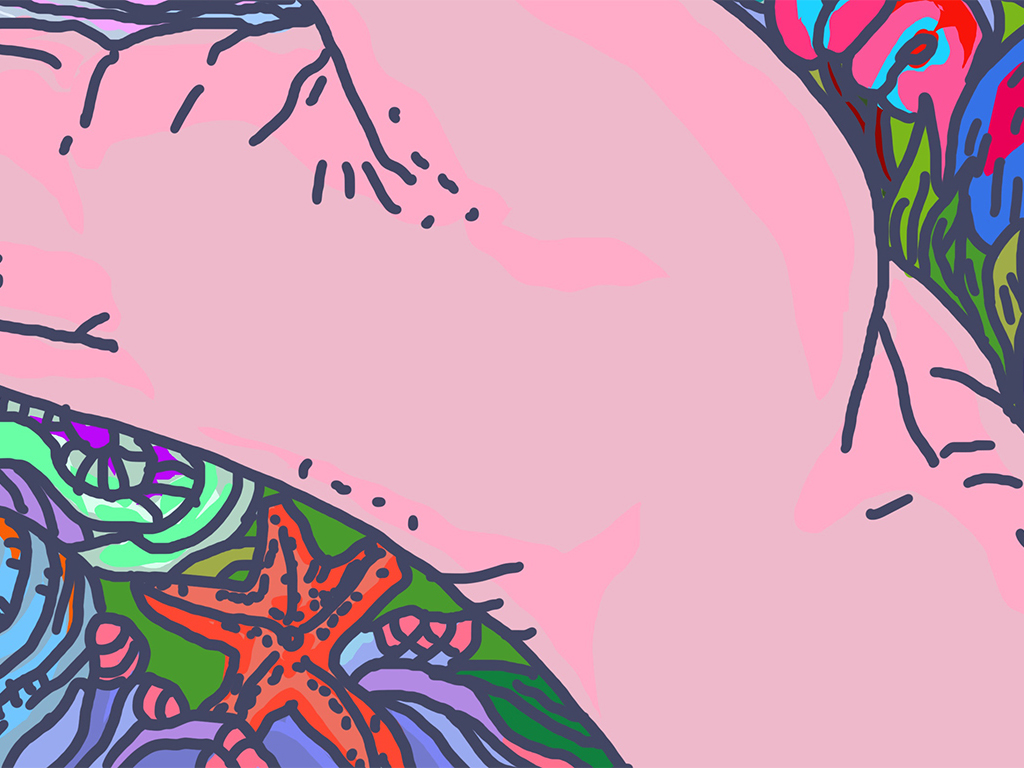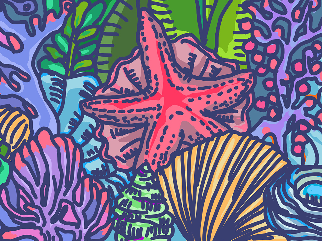 Sous ce tapis magique, la frontière entre la mer et la terre s'estompe, les plantes terrestres coexistent avec les trésors marins, les arbres portent des perles, des coquillages et des étoiles de mer, tandis que des fleurs et des plantes tropicales poussent dans l'eau. Tout cela, comme un miracle du ciel et de la terre, fusionne la diversité de la vie en une seule entité.